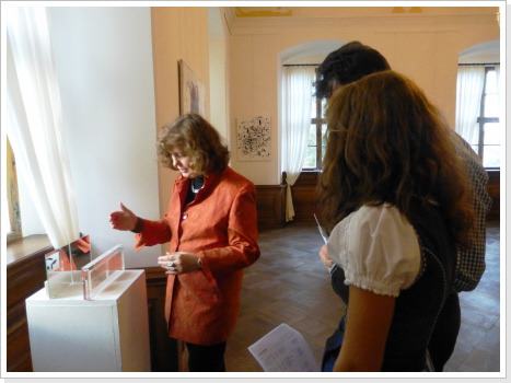 Ellen Hauser erläutert ihre Spiegelung "Das Gegenüber"