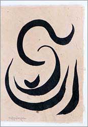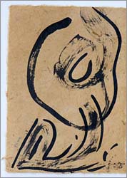 Tusche für diese spartanisch einfachen Arbeiten rührt sie zumeist